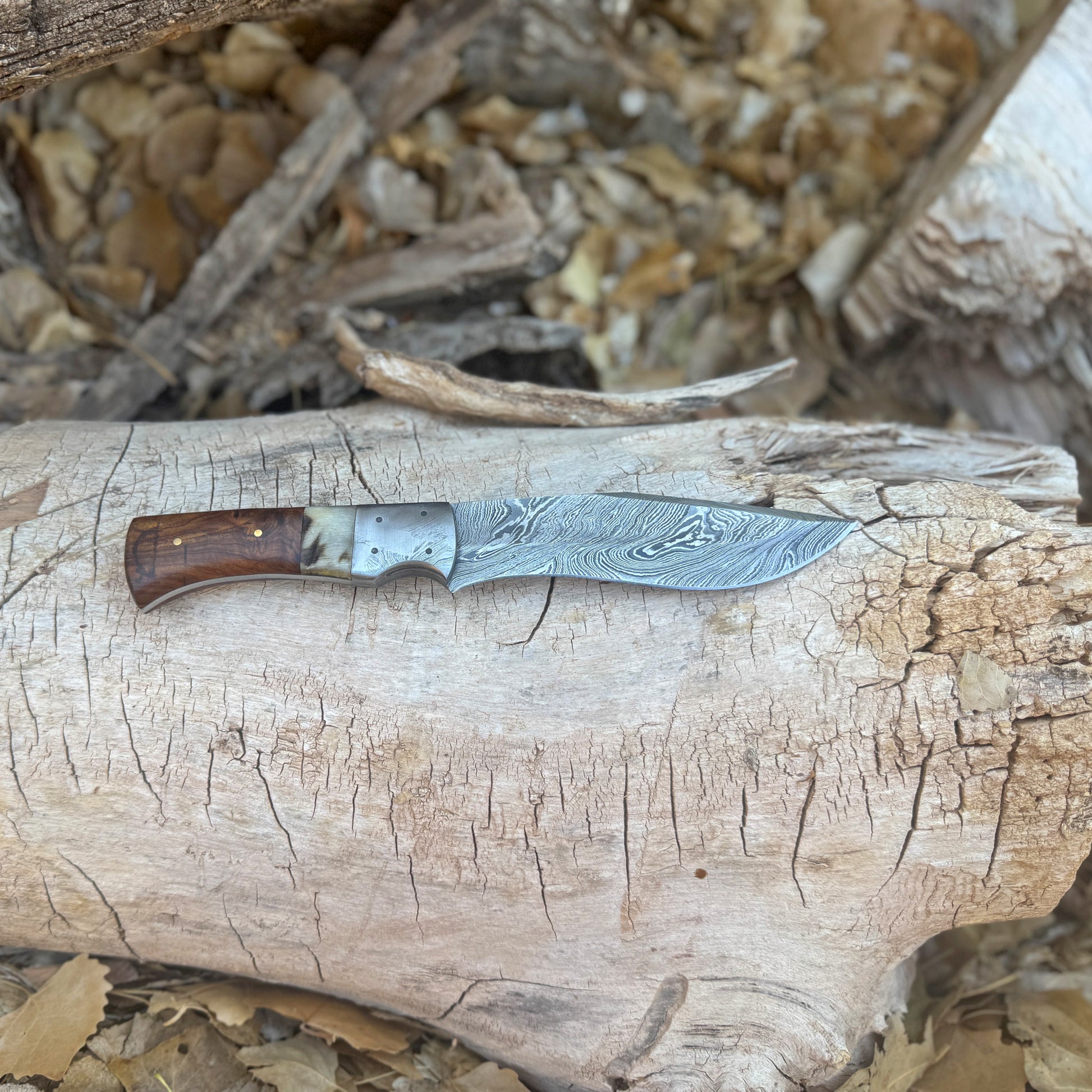 The Nomad Hand-Forged Damascus Camp Knife with Horn & Hardwood Handle